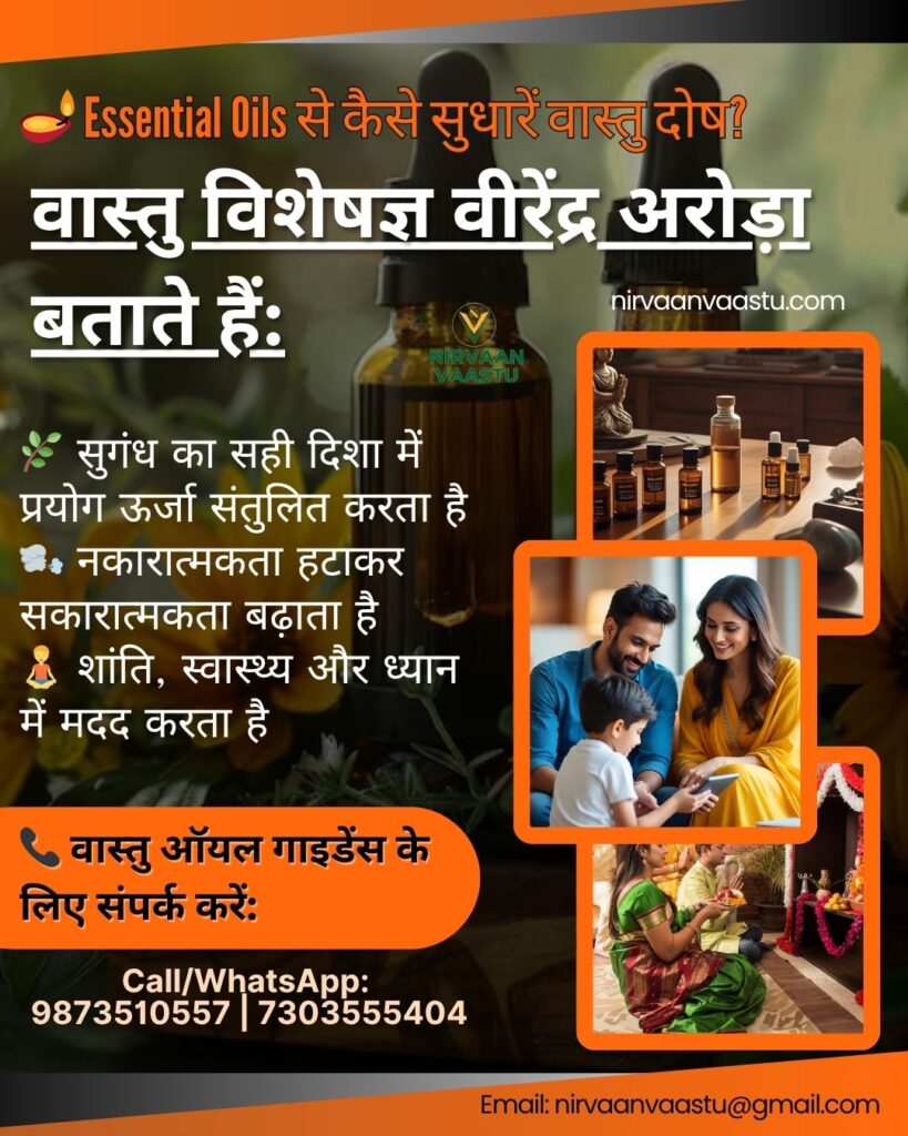 In the world of Vastu Shastra, balancing the five elements—earth, water, fire, air, and space—can transform your home or workplace into a hub of positive energy. One unique and effective method that Vastu Consultant Virendra Arora from Nirvaan Vaastu recommends is the use of Vastu by Essential Oils.