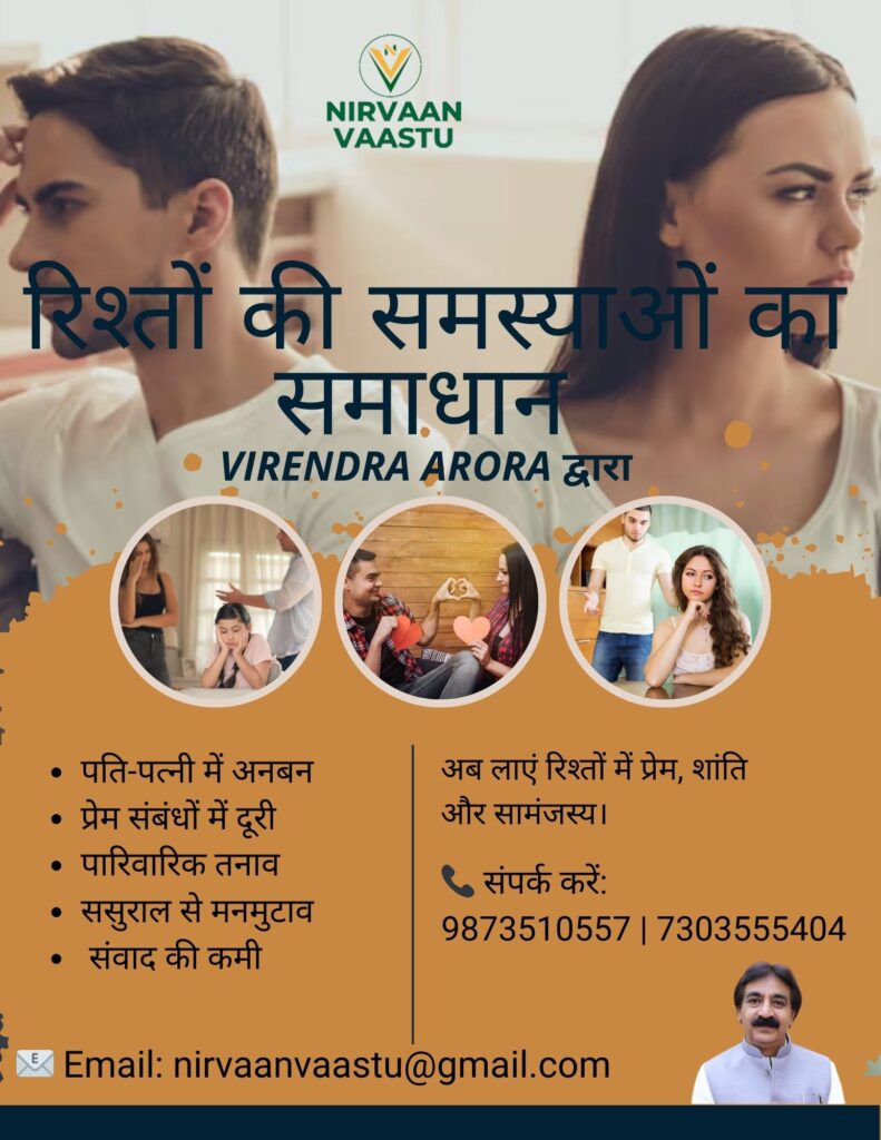 Let Nirvaan Vaastu and Virendra Arora Ji help you restore harmony, love, and happiness in your relationships.