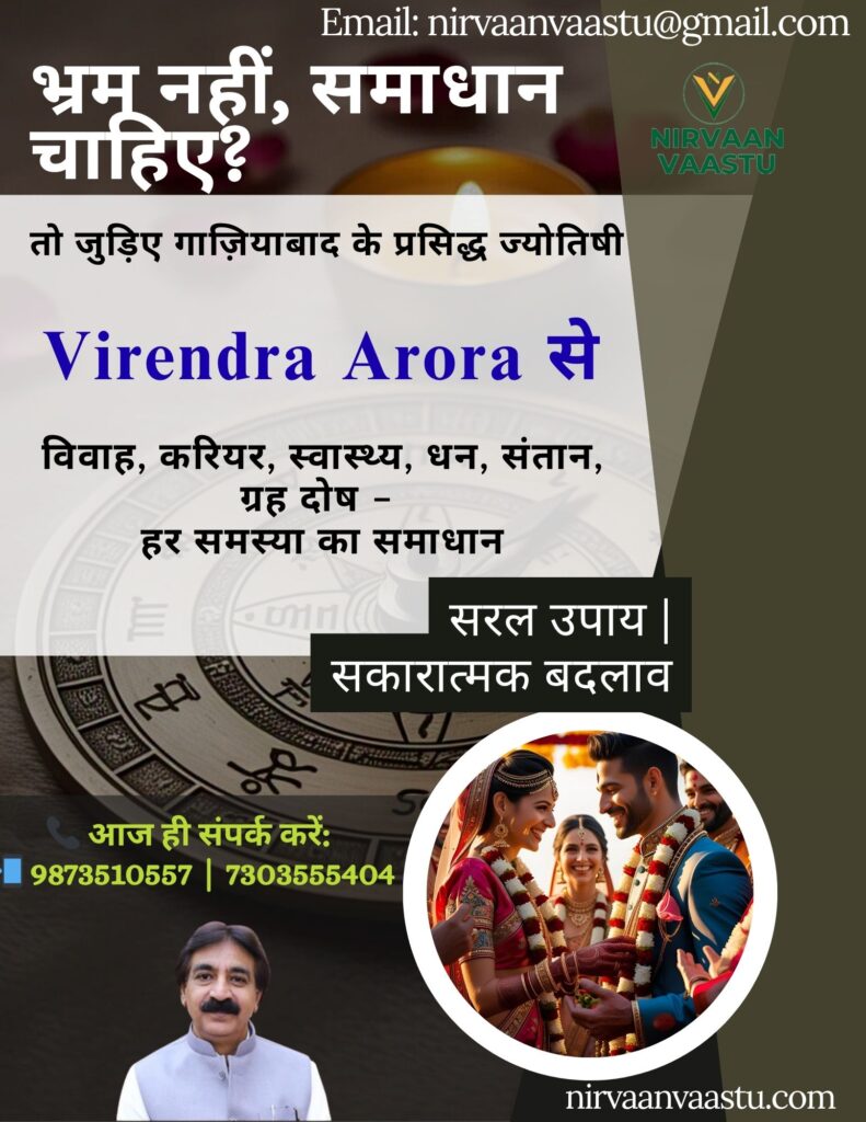 Contact Ghaziabad’s Best Astrologer & Vastu Consultant Virendra Arora Ji today and experience the difference that true expertise can make.